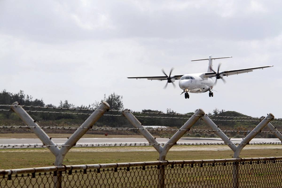 A Japan Air Commuter aircraft lands at Kikai Airport in March 2023
