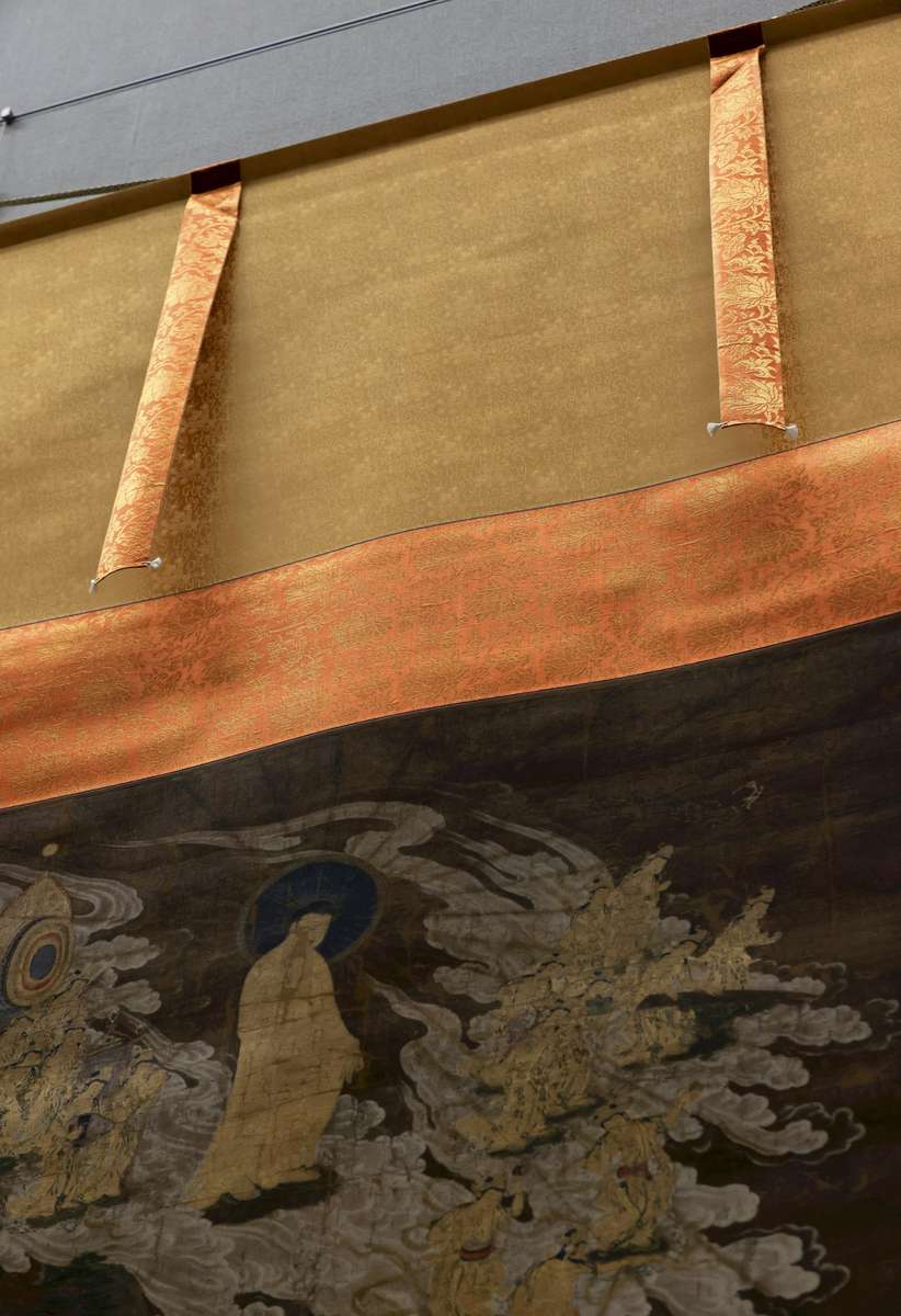 In 2020, Hirose was chosen to be in charge of the production of cloth for mounting “Raigo of Amida (Amitabha) and Twenty-five Attendants,” a painting depicting Amida and 25 attendants as they descend from heaven on clouds over steep mountains. The 14th-century painting, held by Chion-in Temple in Kyoto, is designated as a national treasure.