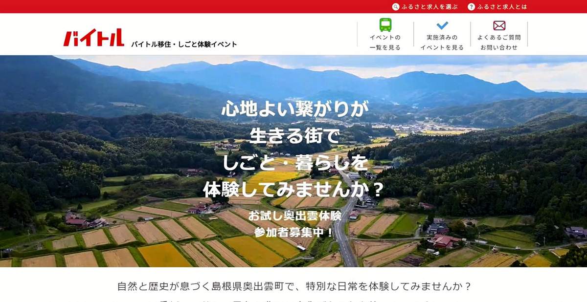 A section on the job posting website Baitoru to advertise jobs in the town of Okuizumo, Shimane Prefecture