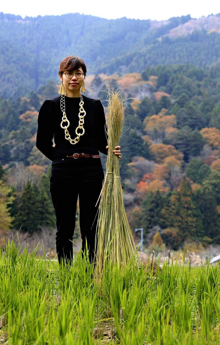 Fujii uses straw she grows in a rice field in Hanase.