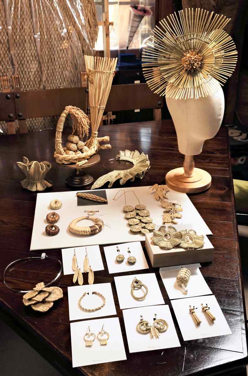 Fujii’s straw accessories made using various techniques