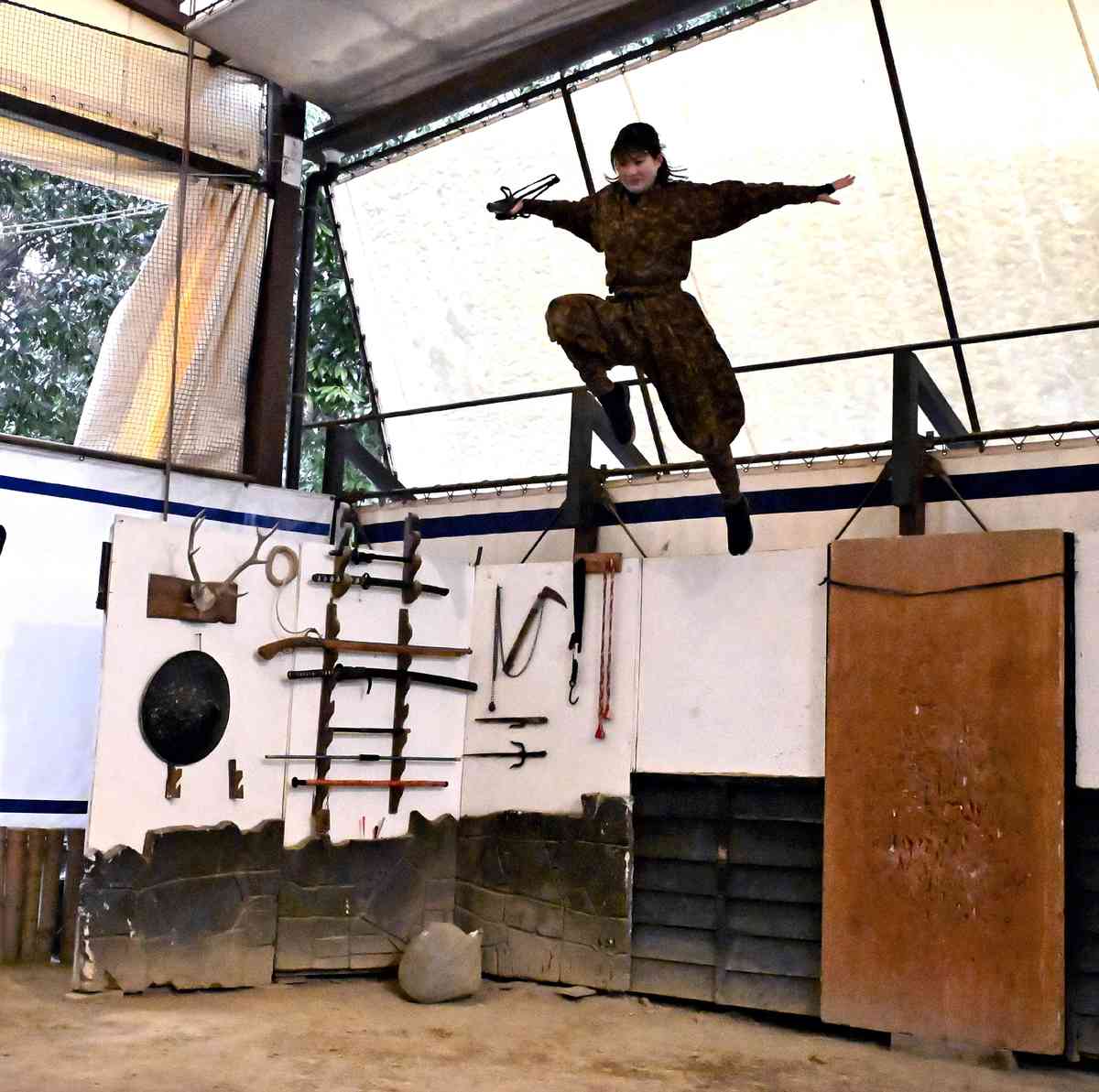 In a show on Feb. 24, the end of a three-day weekend, the new ninja successfully performed various somersaults and leaped from an elevated position. She also demonstrated kumihimo jutsu, which involves using a braided cord in battle, to excited applause from the audience.
