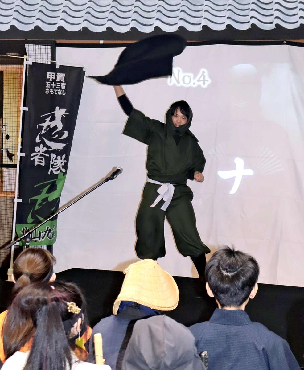 The audition’s final round was held at the Kogaryu Real Ninja Museum, the city’s tourism information center. Each finalist, clad in ninja gear, appeared on stage and showed off their performances and special skills. They also spoke about their enthusiasm to become members of the ninja team.