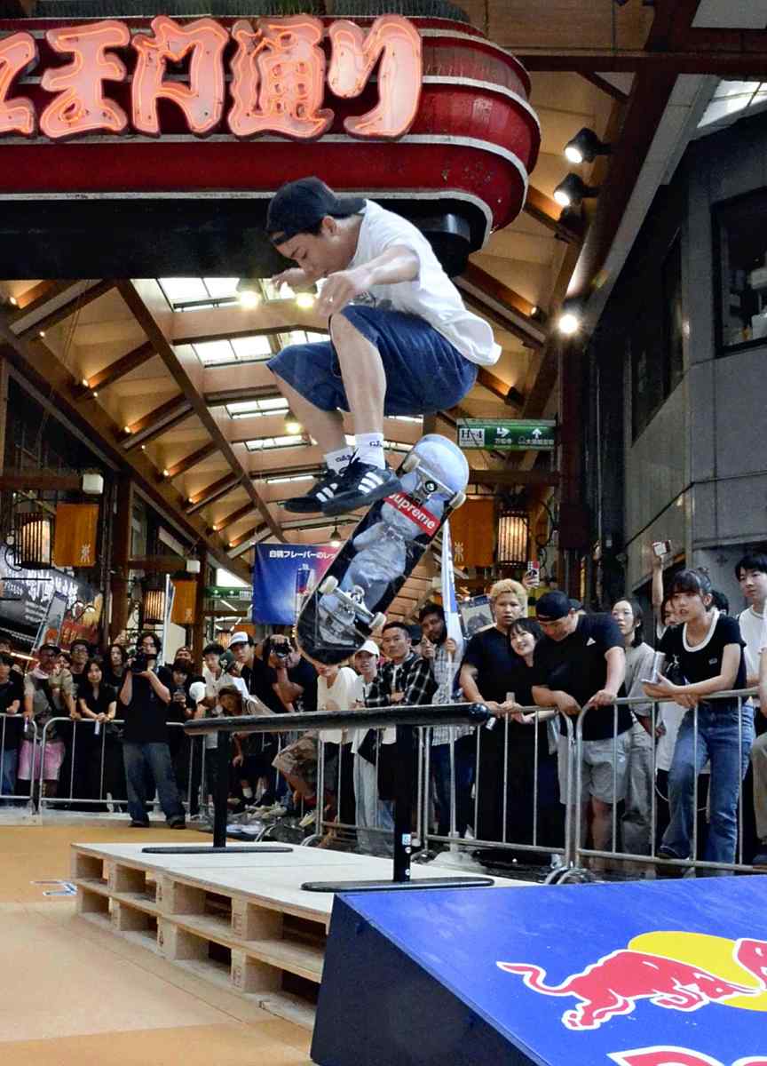 On June 21, cheers arose from fans and crowds as the athletes skateboarded at high speed, performed kickflips and pulled off other tricks at Red Bull Maneki Jam, an event organized by Red Bull Japan Co., a Tokyo-based beverage maker. The company had set up a skating area for the event, which was named after manekineko, or beckoning cats, a symbol of the shopping street’s Fureai Hiroba square.