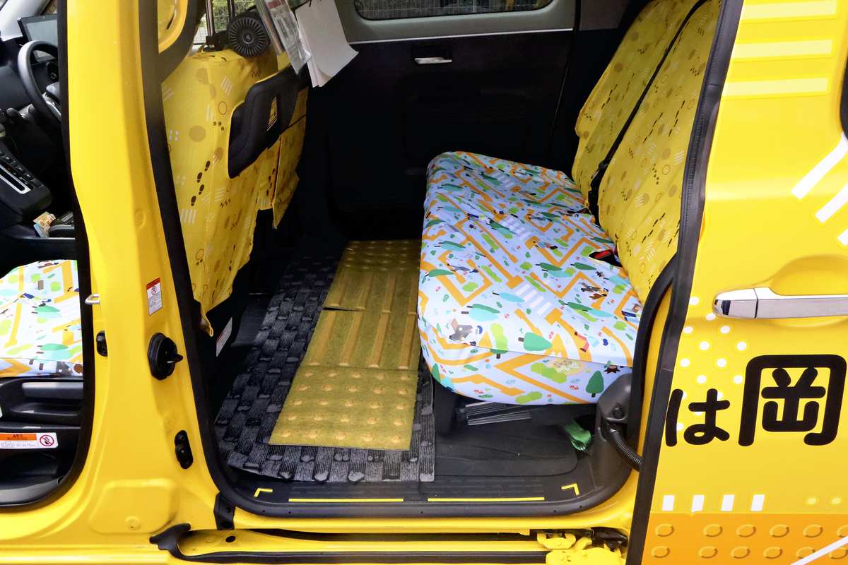 Actual tactile paving blocks in the footwell of a taxi in Kita Ward, Okayama