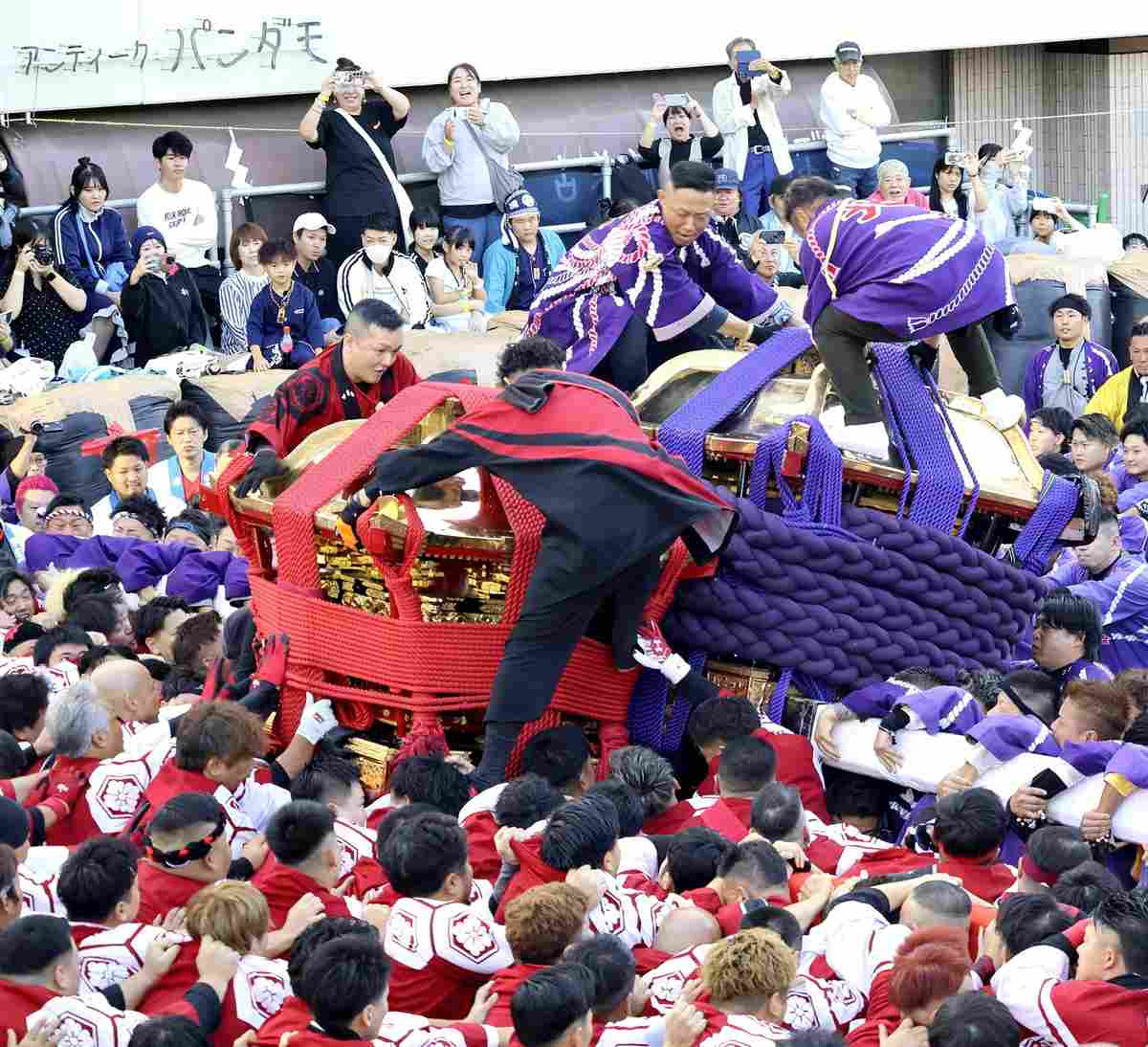 Ehime: Bullish Matsuyama Autumn Festival Held Without Real Fighting, Mikoshi Still Collide in Exciting Duels