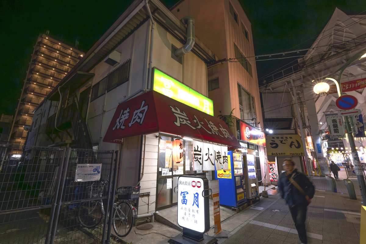 In February 1995, collapsed buildings and burnt ruins could still be seen everywhere. The restaurant’s owner, Toshimitsu Ko, who is now 60, put up a sheet to act as a roof on the street in front of the damaged restaurant and laid out camping tables and chairs. Customers kept warm with a drum can bonfire. He brought sauce out of his damaged restaurant and grilled short ribs and mino beef tripe on a shichirin grill.