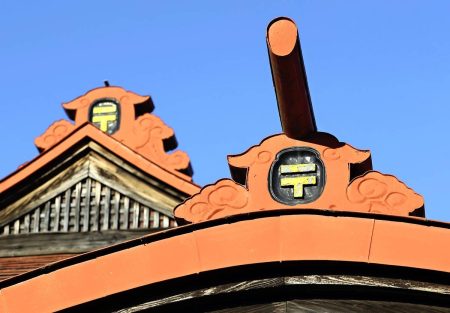 Strolling east from Kodaira Station in Tokyo, I suddenly stumbled upon a scene frozen in time near Ome Kaido avenue. The space gives off an air of a time long past. With temple-like dignified elegance, its striking red roof and eaves bear Japan’s iconic postal symbol — rendered in shimmering gold against a black background.