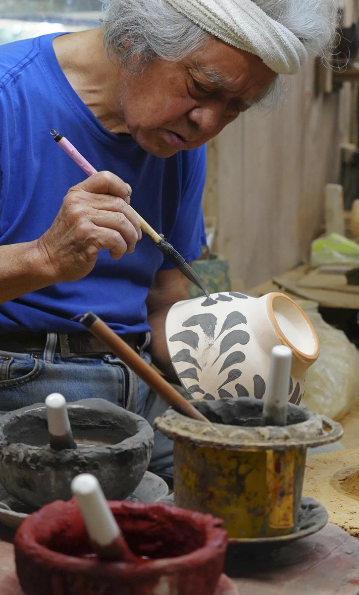 Potter Tsunehide Shimabukuro, 77, heads the Tsunehide Kobo studio in the village of Yomitan, 30 kilometers from Naha, which preserves the Tsuboya ware tradition.