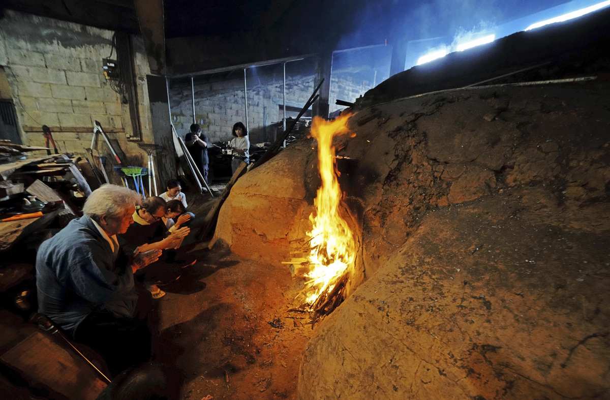 The firing began while Shimabukuro, the eldest member, chanted, “Please give birth [to the wares].”
