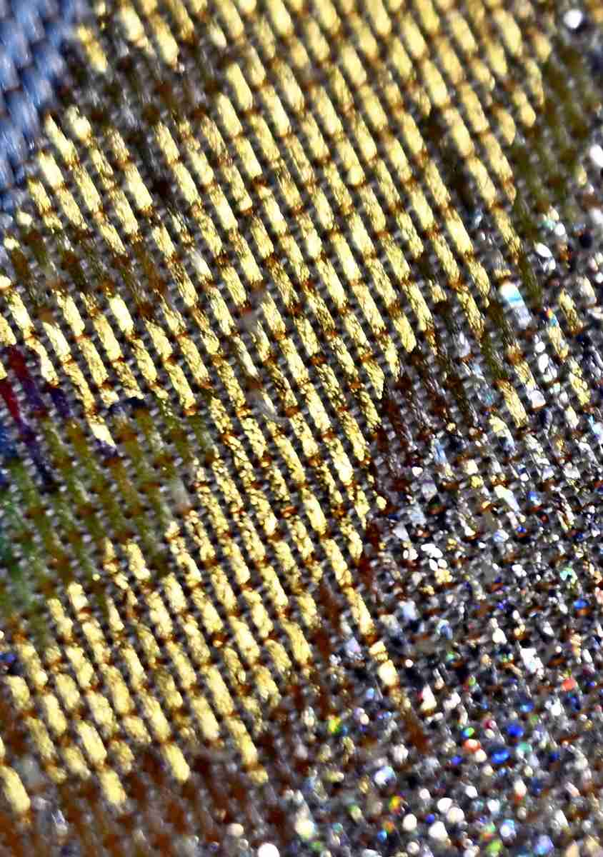 A section of Hyuran woven with hikibaku weft threads to give it a three-dimensional, brilliant appearance.
