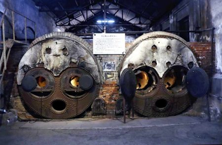 Inside, the original boilers that once powered the plant remain intact, standing taller than a person. Their massive heft still conveys the energy of Japan’s early industrial boom.