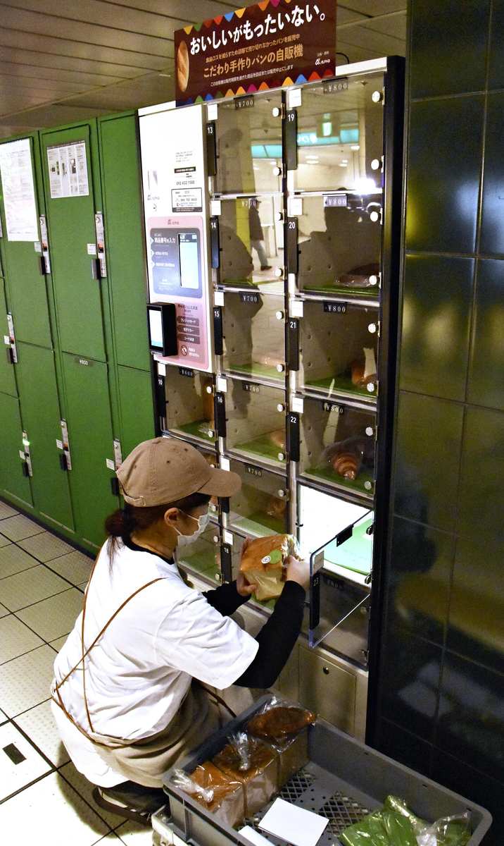 FUKUOKA — Hoping to reduce food waste, a city initiative lets leftover bread and other baked goods that are still in their best-by period be purchased at coin-operated lockers at subway stations in Fukuoka.