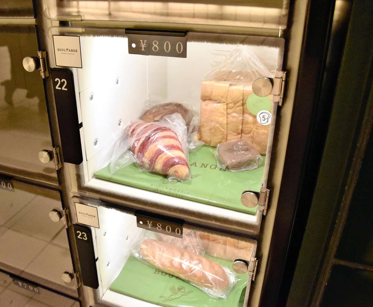 The type of items sold varies depending on the day’s stock, such as white bread and croissants. The items in each locker cost from ¥600 to ¥800, and only cashless payments are accepted.