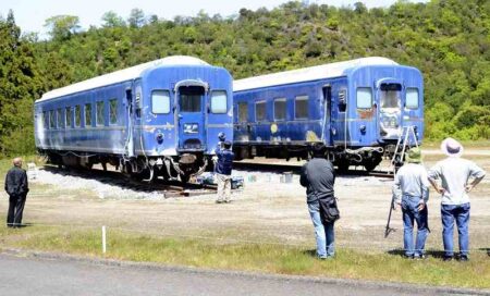 KANONJI, Kagawa — Two retired sleeper train cars that had been left out in the open for about seven ...