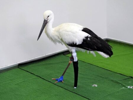 Hyogo: Injured stork struts once again thanks to a bespoke prosthetic leg