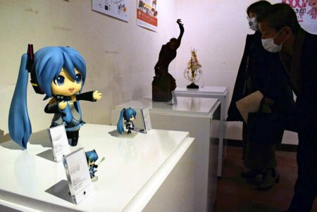 KURAYOSHI, Tottori — About 50 miniature anime and other character figures are on display at the Akag...