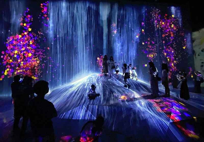 People explore the teamLab Borderless exhibition in Koto Ward, Tokyo.