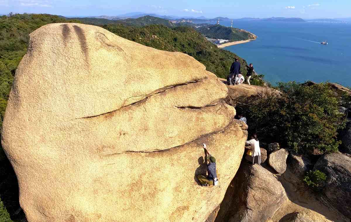 Mt. Ojigatake straddles Tamano and Kurashiki, but its main rocky area is situated in Tamano. On Nov. 5, several enthusiasts were bouldering, while some families with children were enjoying the spectacular view of the Seto Inland Sea and rocks.