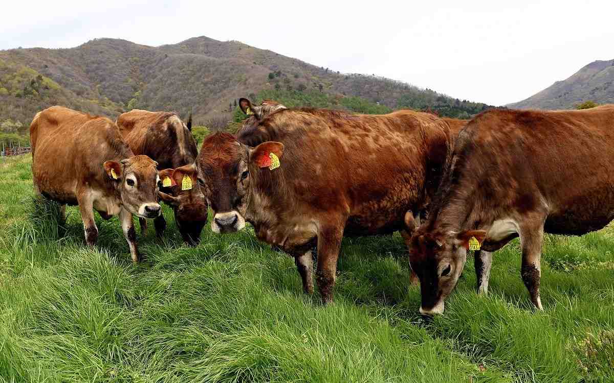 Free-ranging Jersey cows are seen on the Hiruzen Plateau in Maniwa, Okayama Prefecture.