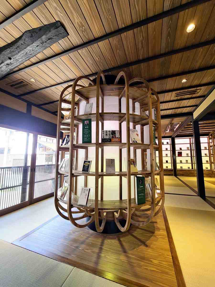 ODA, Shimane — A former merchant’s house on the main street of the Iwami Ginzan Silver Mine and its Cultural Landscape — a UNESCO World Heritage site — has been transformed into a library with such features as a shallow courtyard pool and bookshelves designed to resemble mining haulageway ruins.