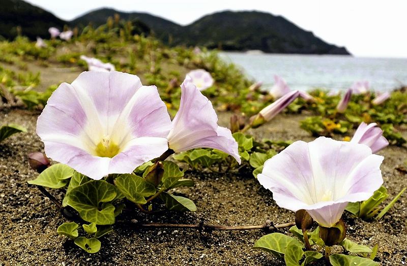 Sea Bindweed Flowers Bloom in Tokushima Prefecture’s Minami Town As Summer Comes