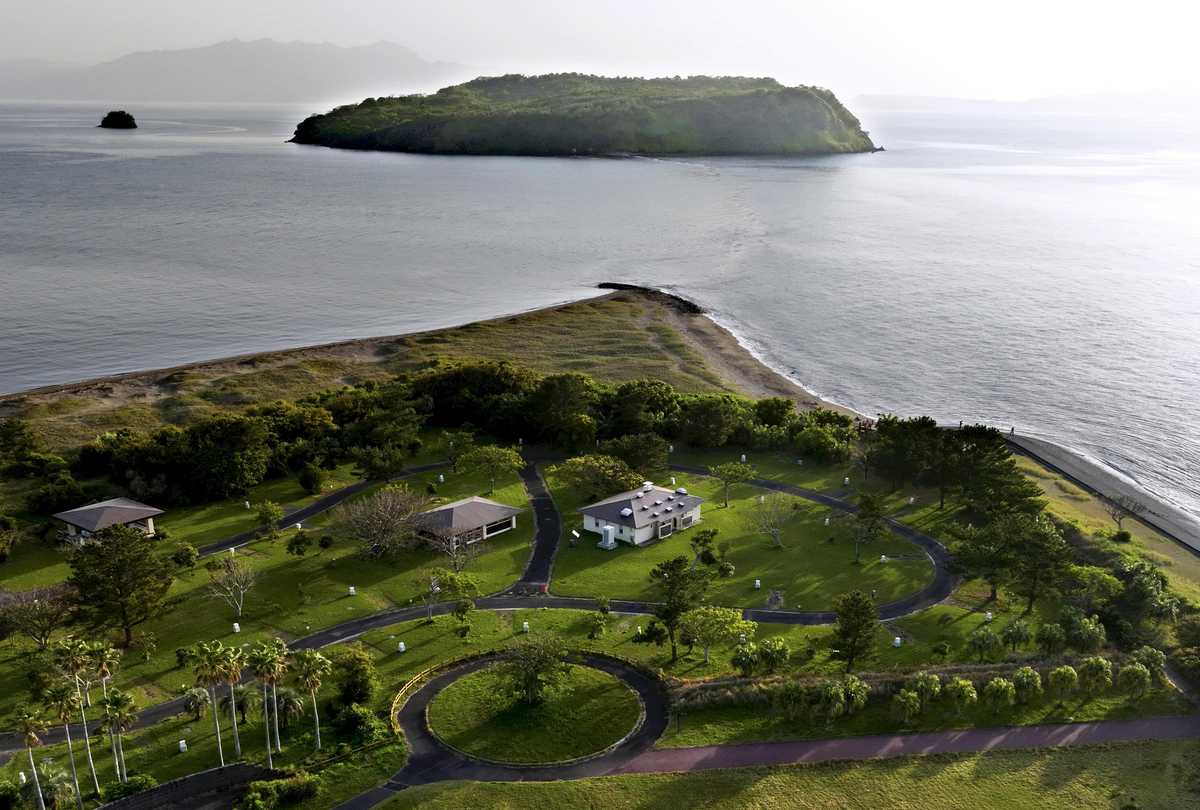 The beautiful sandy beach lies near a campground where the former Ibusuki naval air base was located. Toward the end of World War II, the base served as a suicide attack base for sea-based aircraft, with many young soldiers departing from there.