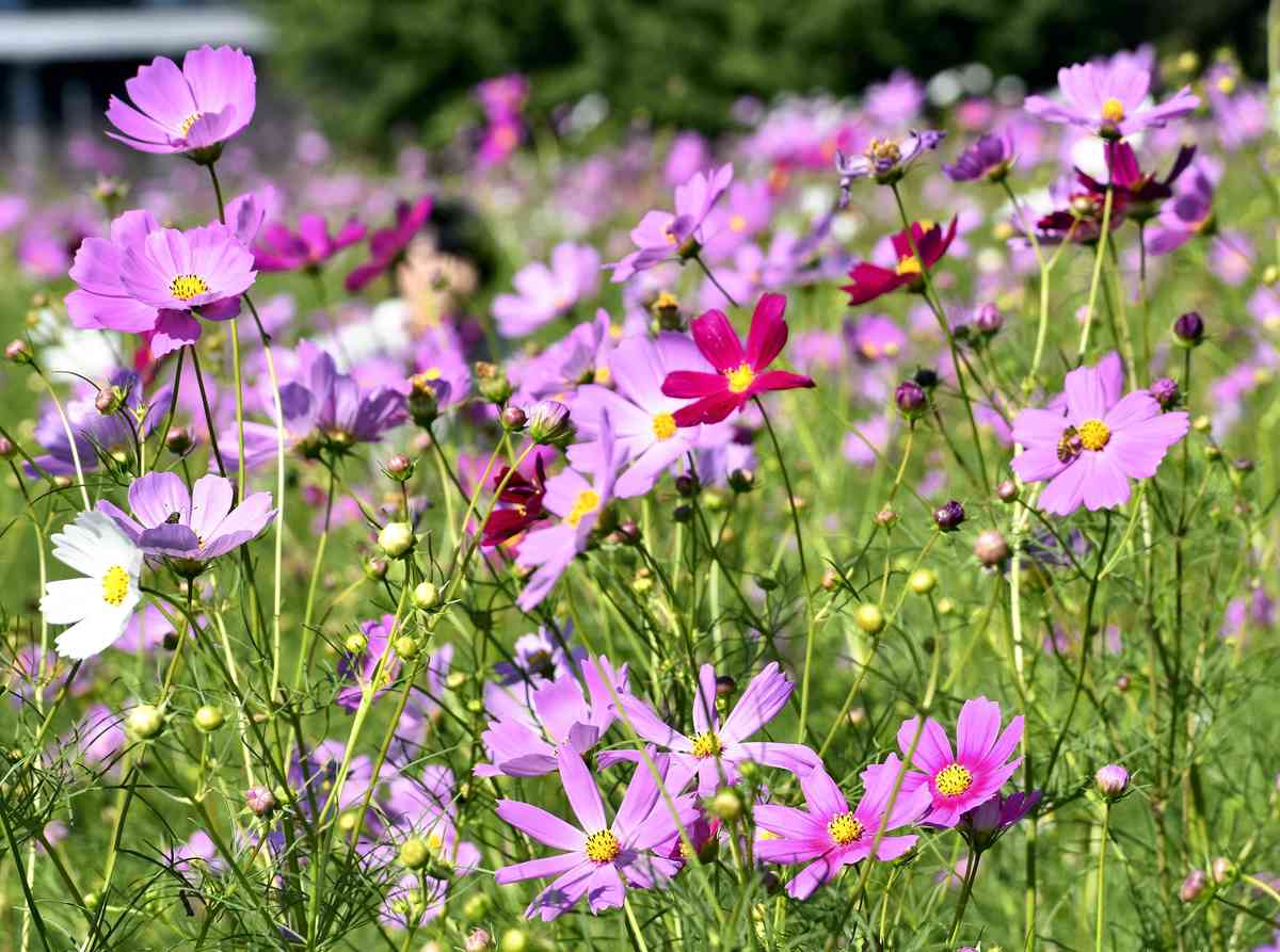 After sowing seeds in summer, staff members of the organization were worried if the cosmos might bloom later than expected due to this year’s intense heat. However, temperatures fell enough in the morning and evening since the beginning of October, prompting the flowers to start blooming at once.