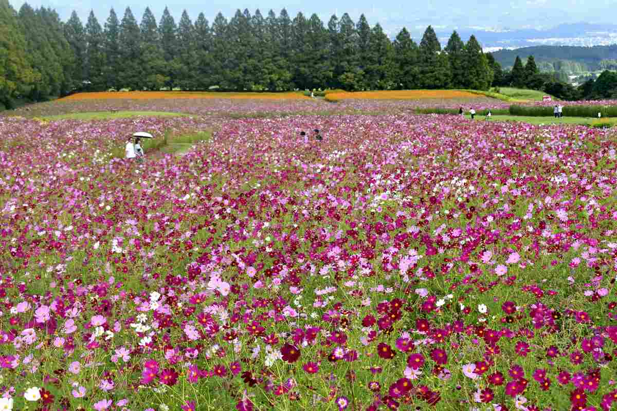 KOBAYASHI, Miyazaki — About 1 million cosmos are in full bloom on Ikoma Plateau in Kobayashi, Miyazaki Prefecture, captivating visitors with their pink, white and purple petals.