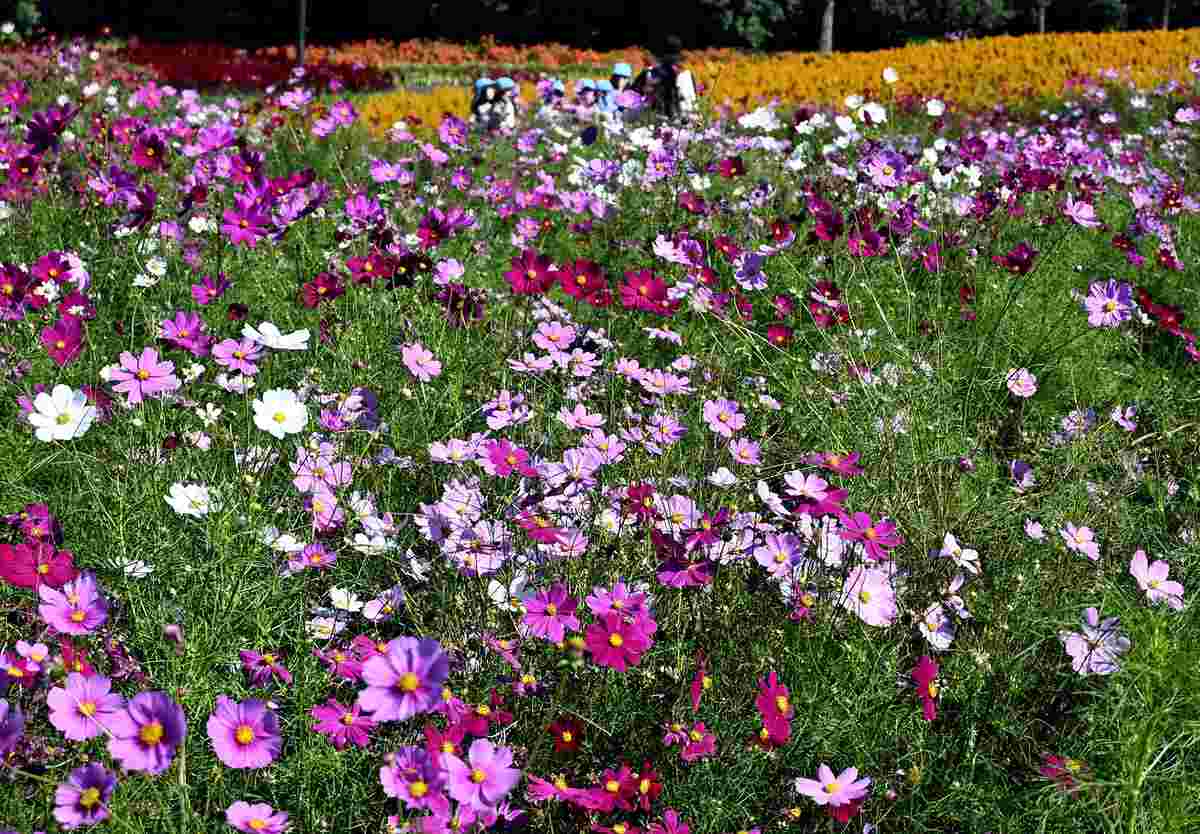 Five varieties—red, pale pink, white and others—have been planted in the Flower Plaza, swaying in the breeze beneath the autumn sky.