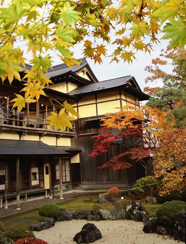Autumn Leave Brighten Garden in Akita Pref., Delighting Visitors to Traditional Japanese Building with Vivid Colors