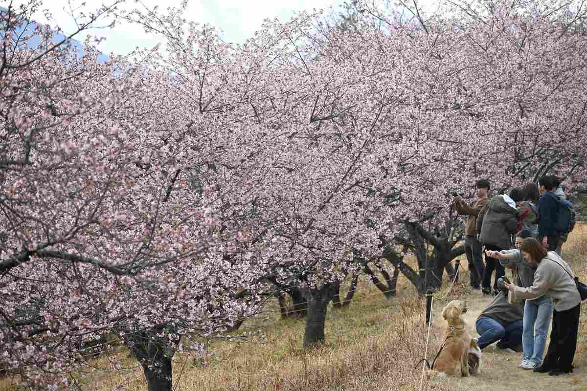 Kawazu cherry blossoms are at their peak, and visitors to a park in Ibaraki Prefecture, Japan, were able to take in the colorful view.