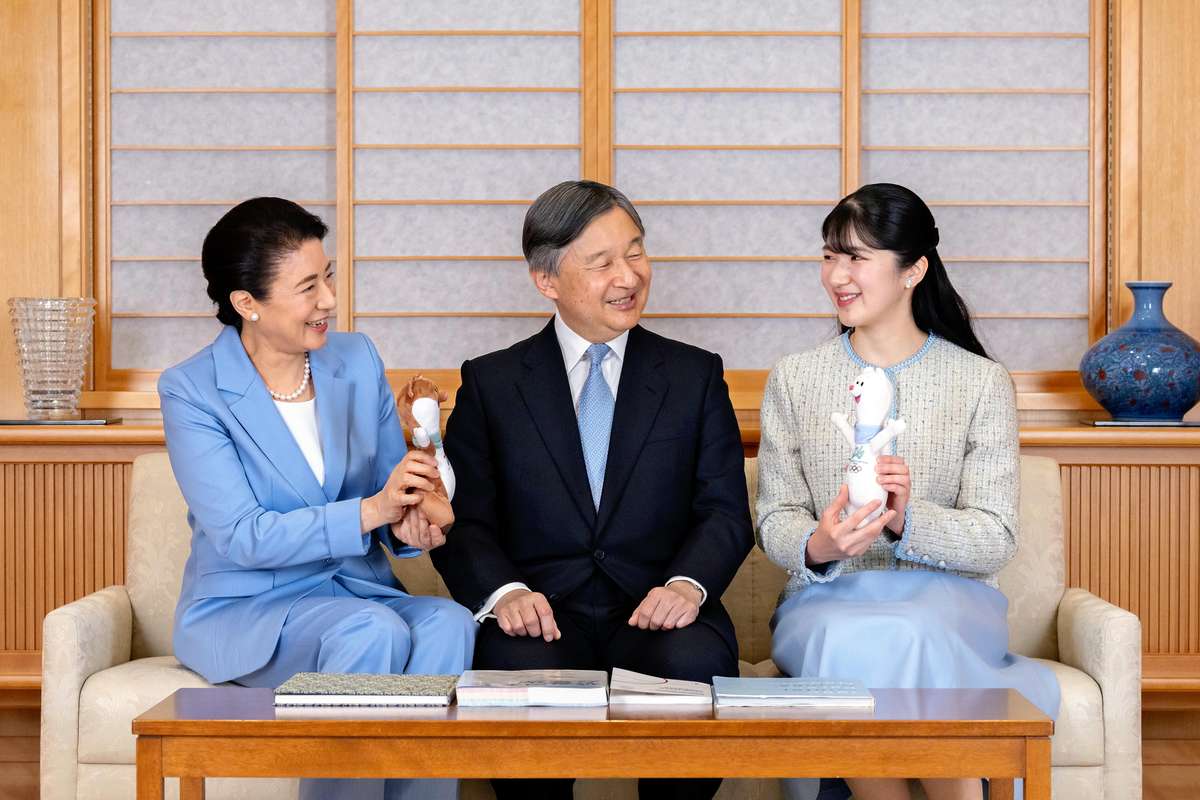 The Emperor and Empress, along with their daughter Princess Aiko, chat with the official mascot of the Milano Cortina Olympics in hand at the Imperial Palace in Tokyo on Tuesday.