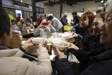 WAJIMA, Ishikawa — Soba, a traditional New Year’s Eve dish, was served to residents of a temporar...