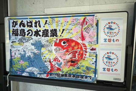 “A synonym for fine fish. Great for dinner! Jobanmono.” A promotional video of children and local residents dancing and singing cheerfully along with such lyrics was repeatedly played on a monitor at the fresh fish section of the large supermarket AEON Mall Iwaki Onahama in Iwaki City.