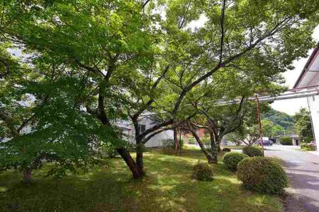Trees on the brewery premises. Cherry blossoms flower in the spring.