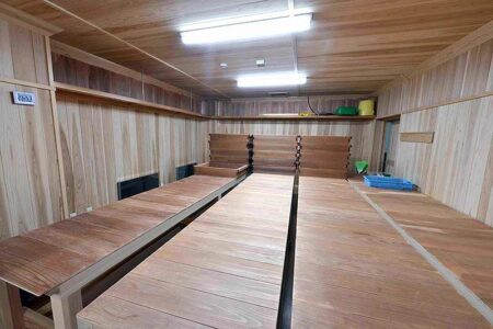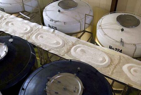 Two large rice millers owned by the brewery. Each rice mill can mill 1200 kg of brown rice. They are in full operation during the busy winter season. Cannot be used for Craft Sake or other small-batch brews.