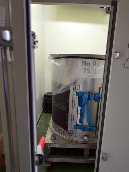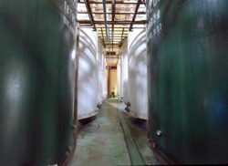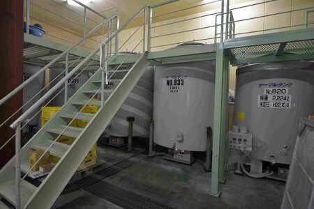 Medium-sized brewing and sake storage tanks. In winter, the tanks are used to brew about 1500 kg of rice. In the summer, they are used to refrigerate and store the finished sake. (Courtesy of Senjo)