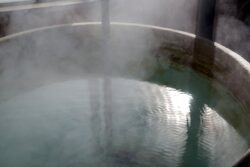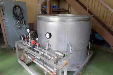 Hot water used for sterilization is boiled in a stainless steel tank. (Courtesy of Senjo)