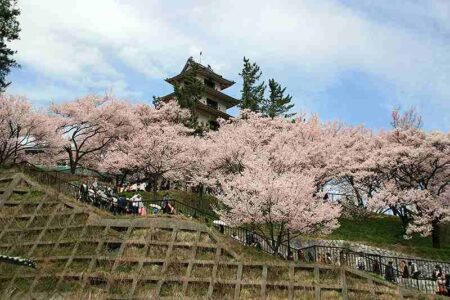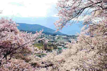 Cherry blossoms in bloom at the Takato Castle Site Park (Courtesy of Senjo)