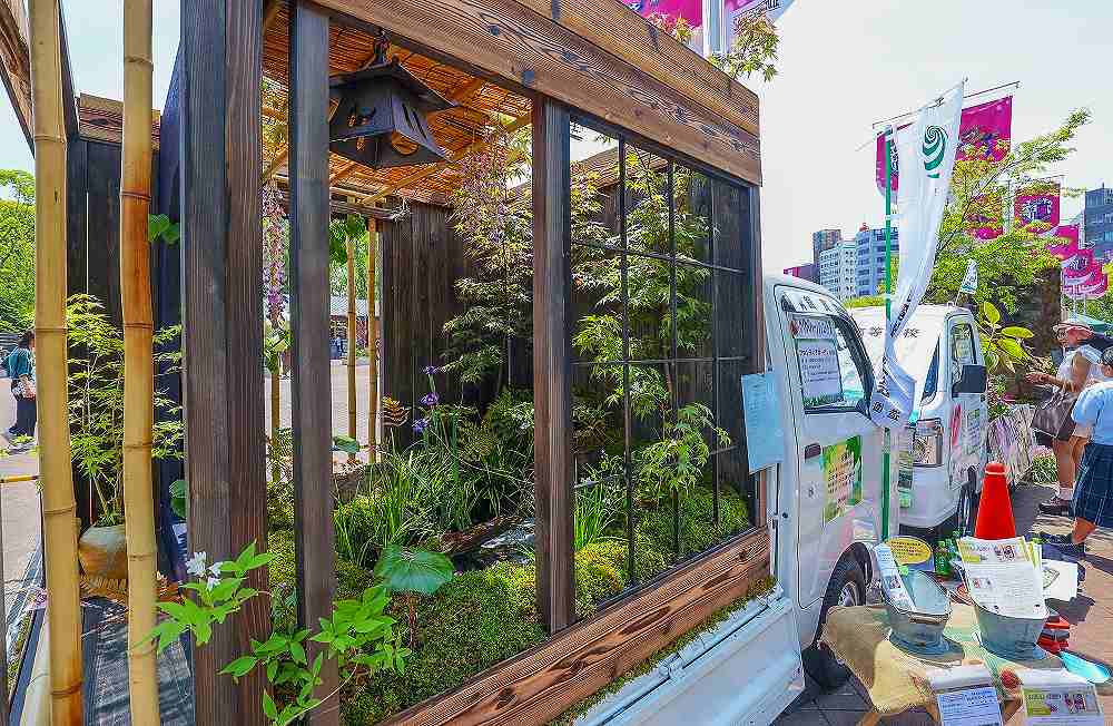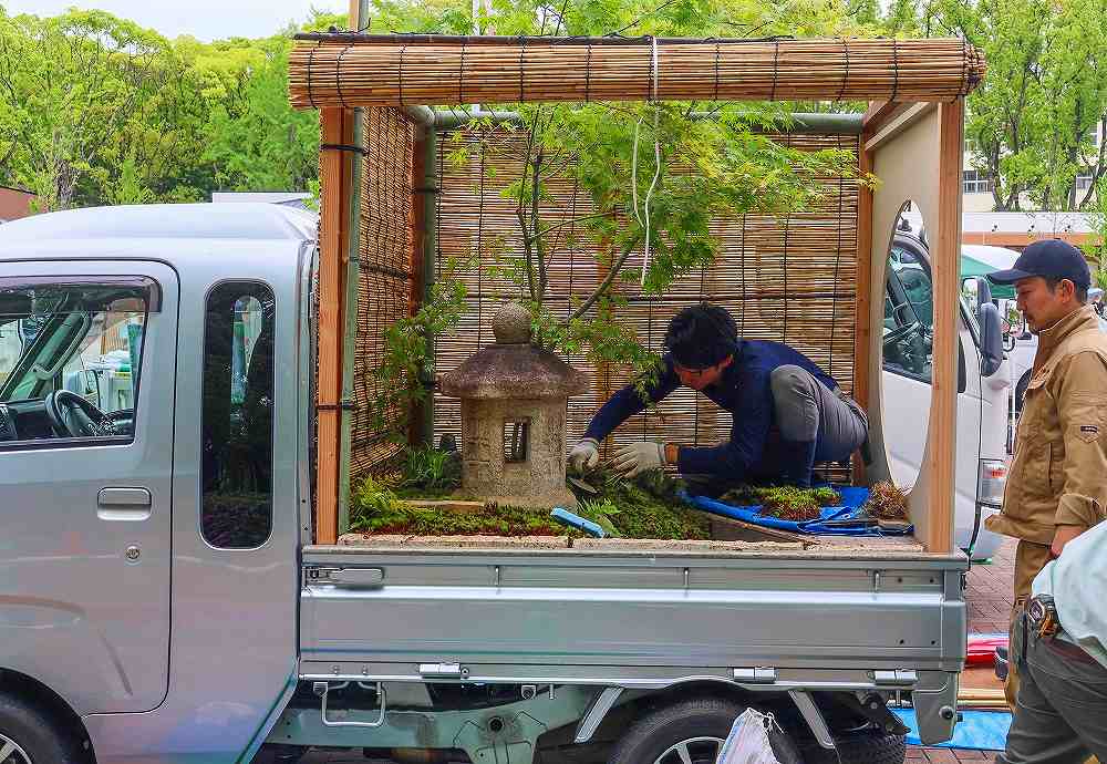 During the season of beautiful greenery, professional gardeners with skills deeply rooted in the long history and profound traditions of Japanese gardening competed in the event, in which they created gardens based on their own concepts in the modern but limited spaces on the beds of light trucks.