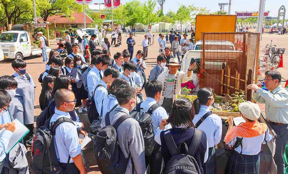 This year, a total of 16 participants from Osaka, Kyoto, Hyogo, Wakayama and Shiga prefectures took part, including companies, individuals and a horticulture high school. The event was held on April 27-28 because the numbers 4, 2 and 8 can be pronounced the same way as the phrase “Yoi niwa” which means “good garden.”