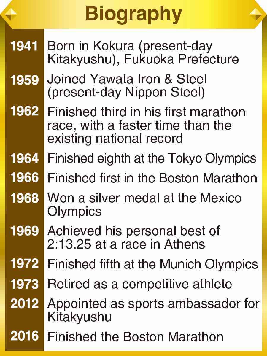 Kenji Kimihara has run 74 full marathons and finished all of them without dropping out. Running opened up a new path in his life. The legendary marathoner, who competed in three consecutive Olympics, starting with Tokyo in 1964, vows he will keep running marathons as long as he lives. At age 83, he is still light on his feet.