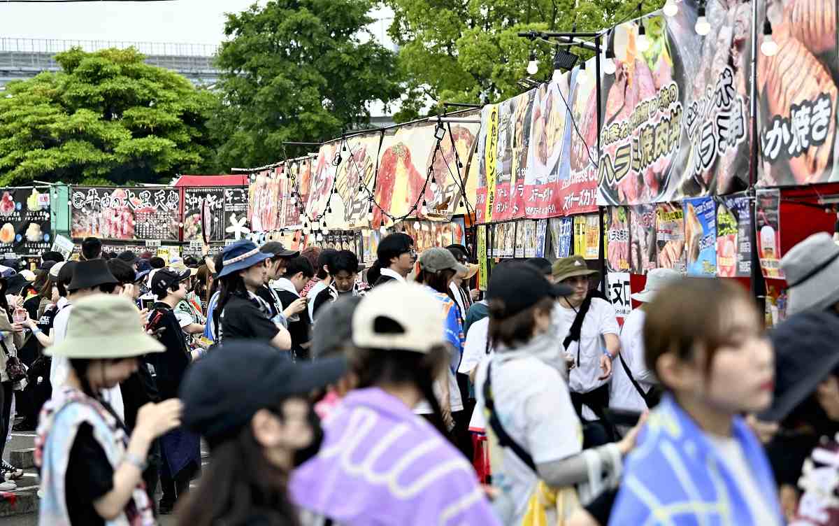 People get excited near a stage at Wakasu Park in Koto Ward, Tokyo.