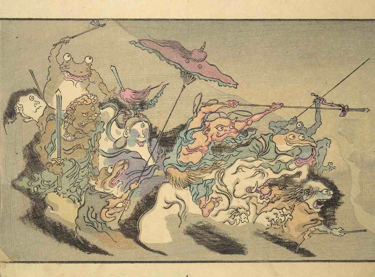 During such times, aristocrats sometimes happened to encounter a crowd of strangers who walked by while making loud noises. People in those years called them “hyakki yagyo,” which means a night parade of 100 demons. They appeared during the night in the darkness.