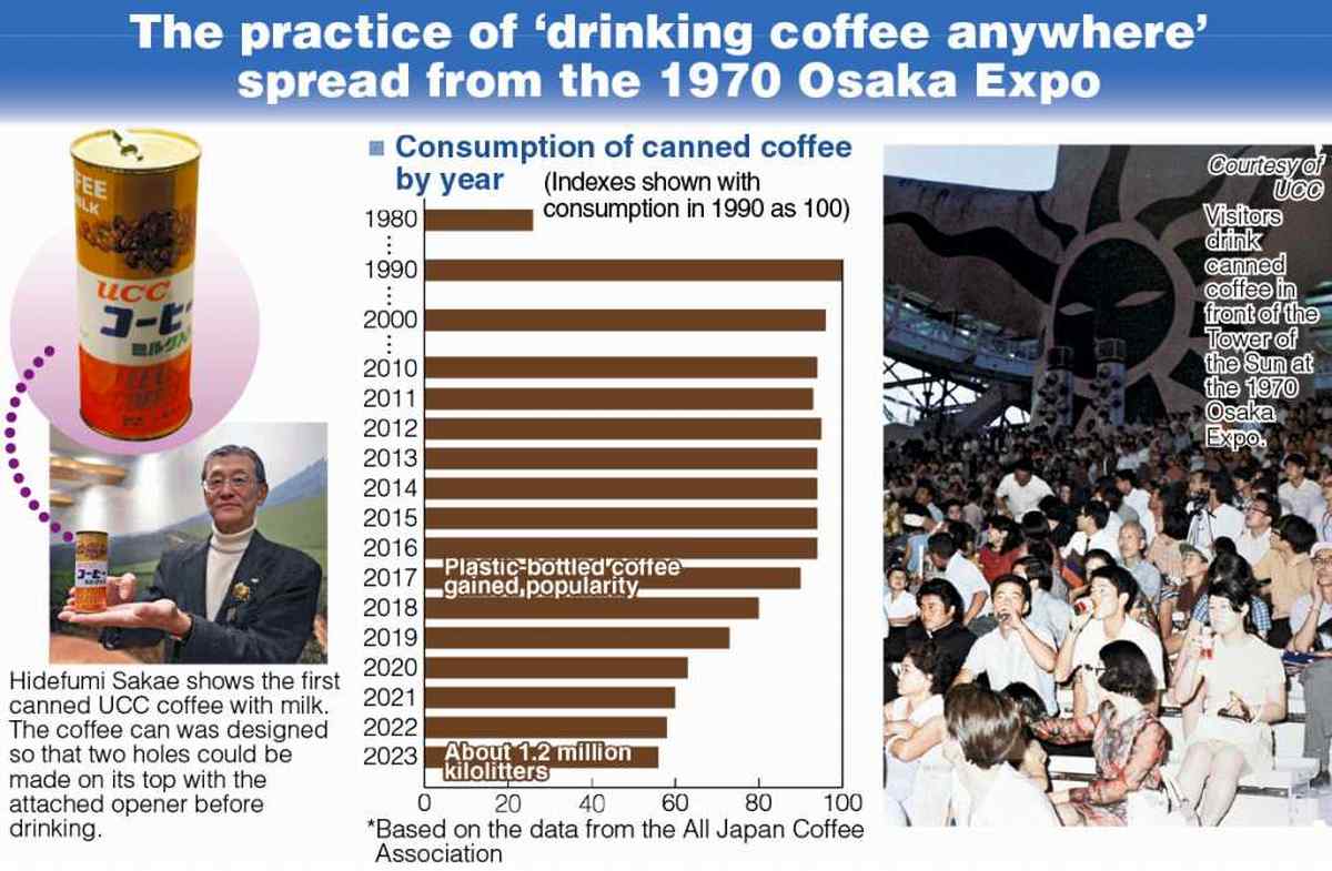 With less than 100 days to go before the opening of the 2025 Osaka-Kansai Expo, it makes sense to focus on the 1970 Osaka Expo, which contributed to the creation of many innovative products and services that are now commonplace. Canned coffee is one of them.