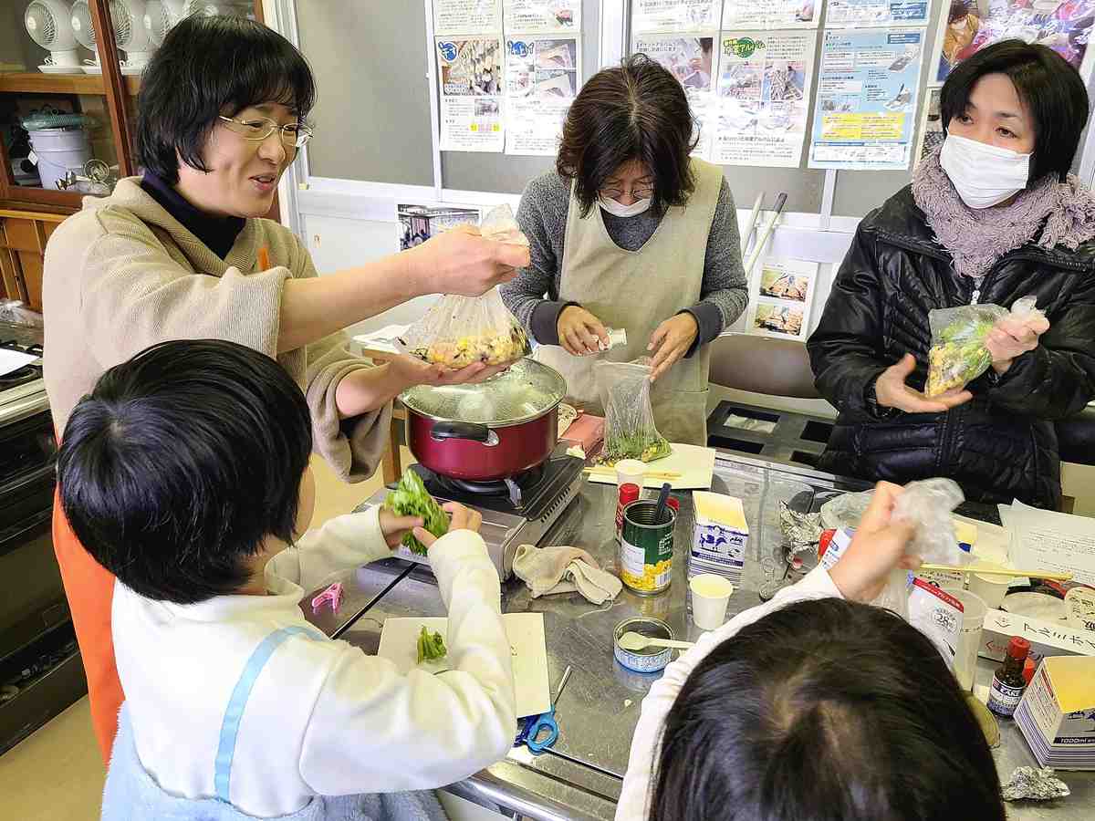 In December, she taught six Izumo residents how to make a custard pudding with an empty milk carton. She also taught them how to make a dried daikon radish salad, as well as how to prepare canned mackerel cooked in miso using a heat-resistant cooking bag.