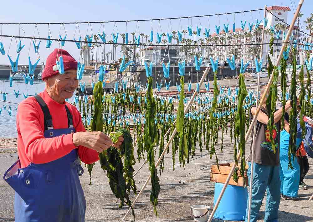 The wakame seaweed-drying season is at its peak at Kotsubo fishing port.