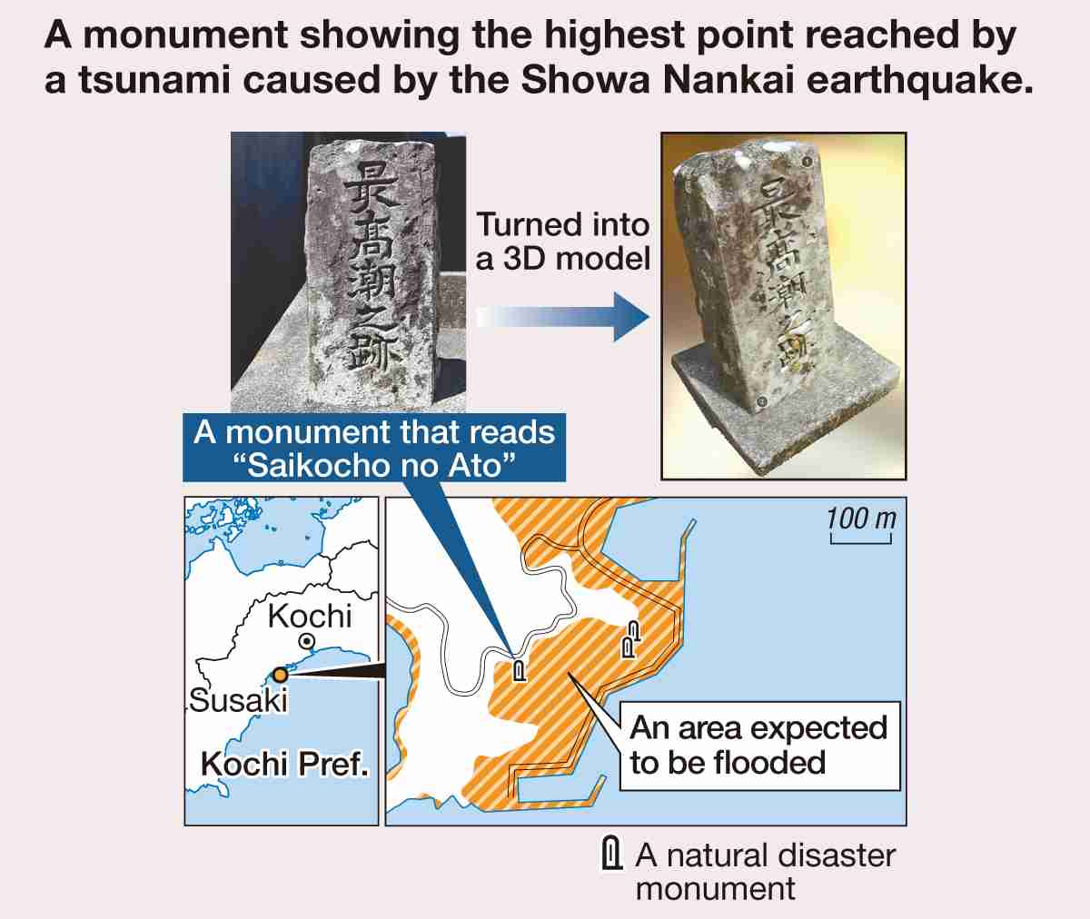 KOCHI — A researcher is working to preserve natural disaster monuments, which tell the stories of past disasters, by turning them into digital 3D models.