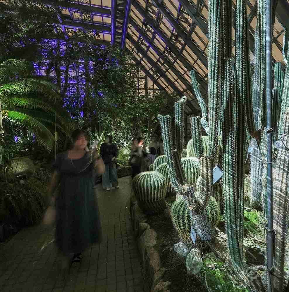 KYOTO — The Kyoto Botanical Gardens in Sakyo Ward, Kyoto, which celebrated its 100th anniversary last year, is holding an event called “Light Cycles Kyoto,” in which its Conservatory greenhouse is filled with sound and dynamic lights at night. The immersive event allows visitors to experience the fascination of plants at night.